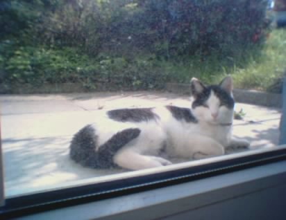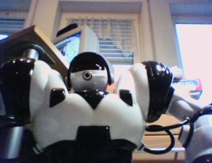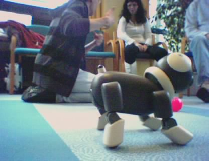 Die Fotos mit der Nachbarskatze "Schnecke" habe ich durch Fernsteuerung des Aibos gemacht.